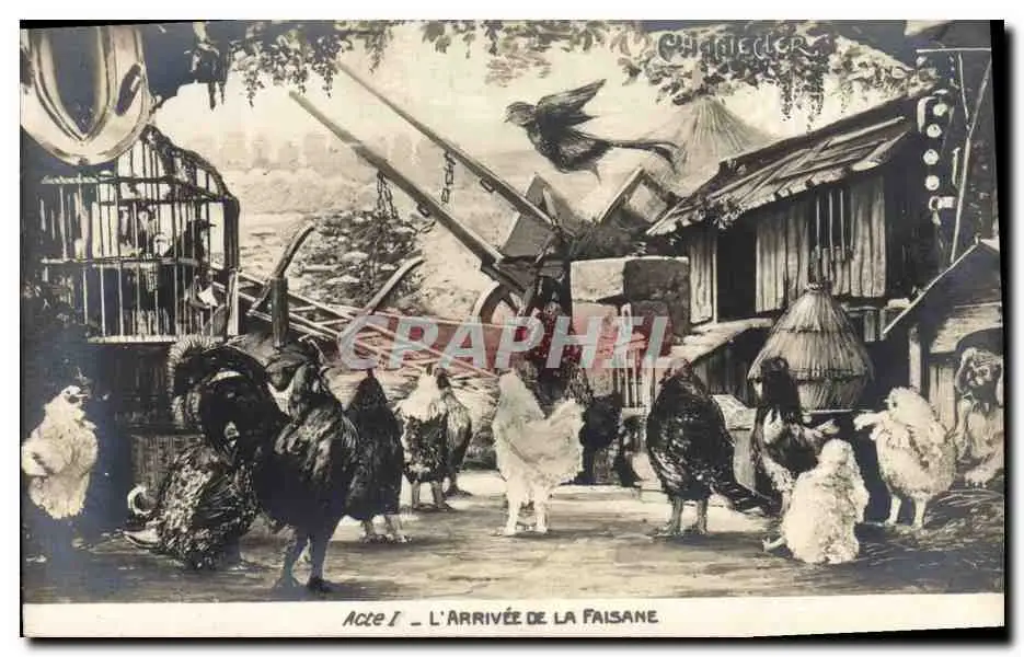 Cartes postales Theatre Rostand Coq Chantecler L'arrivee de la faisane
