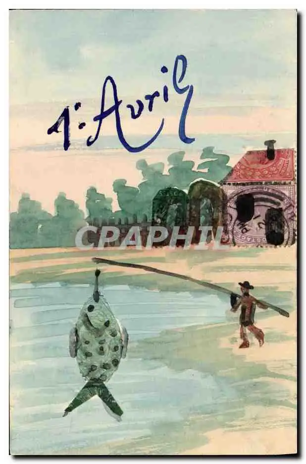Cartes postales Timbres 1er Avril Poisson Peche Pecheur