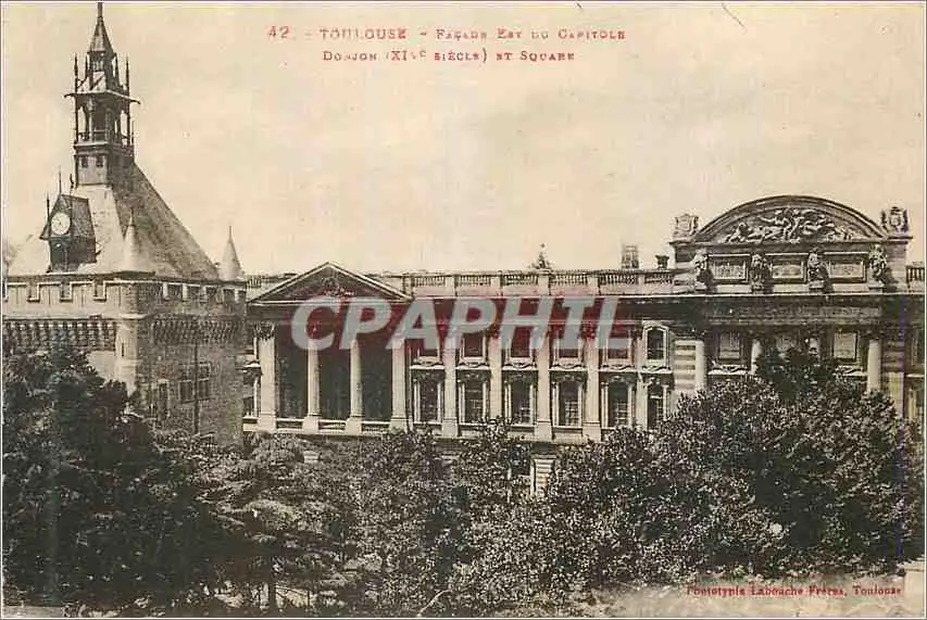 Cartes postales Toulouse Facade est de Capitole Donjon (XIVe Siecle) et Square