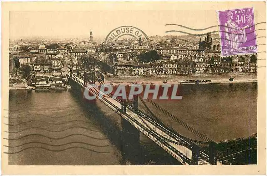 Cartes postales Toulouse Vue Generale Au premier plan Le Pont Suspendu sur la Garonne