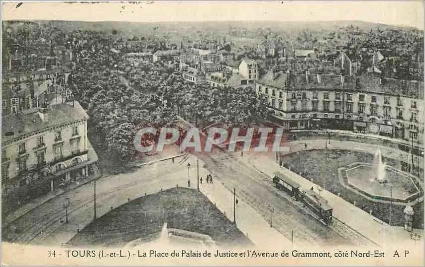 Cartes postales Tours I et L La Place du Palais de Justice et l'Avenue de Grammont cote Nord Est Tramway