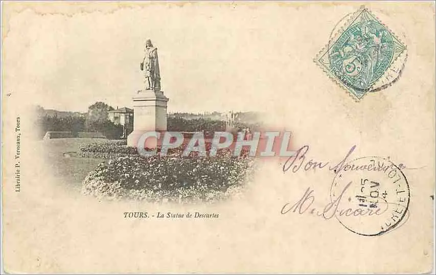 Cartes postales Tours La Statue de Descartes (carte 1900)