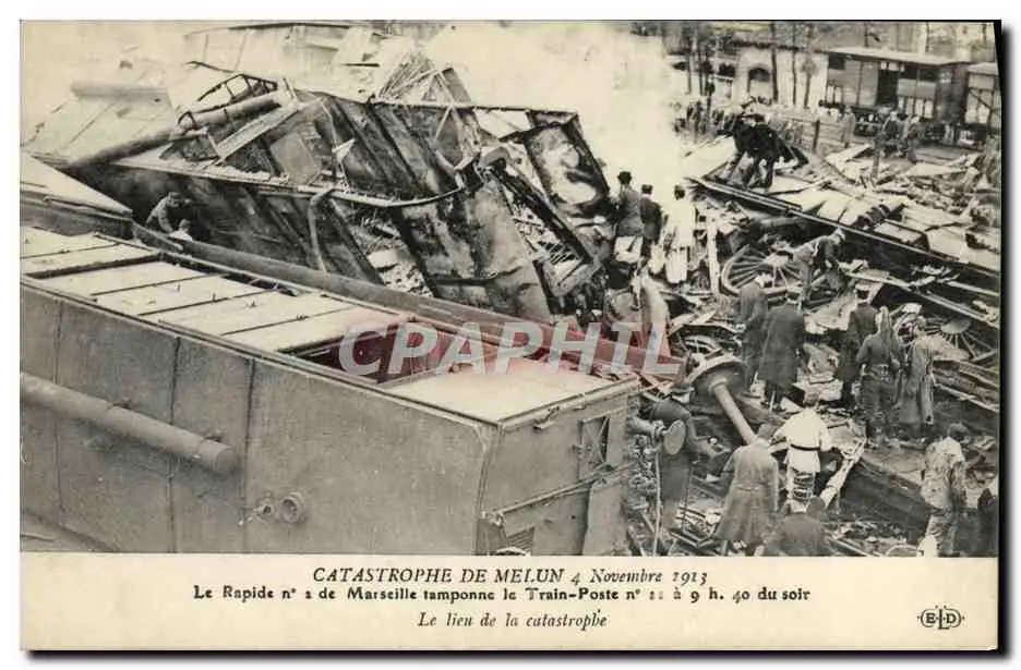 Cartes postales Train Catastrophe de Melun 4 novembre 1913 Le rapide n�2 de Marseille tamponne le Train Poste Le