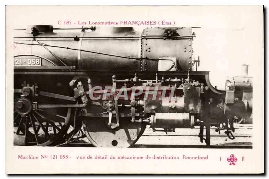 Cartes postales Train Locomotive Machine 121 058 Vue de detail du mecanisme de distribution Bonnefond