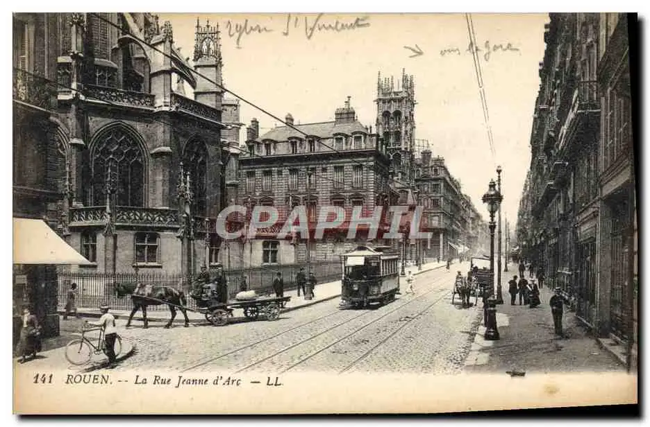 Cartes postales Tramway Train Rouen La rue Jeanne d&#39Arc
