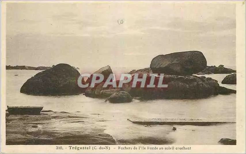 Cartes postales Tregastel C du N Rochers de I'lle Ronde au soleil couchant