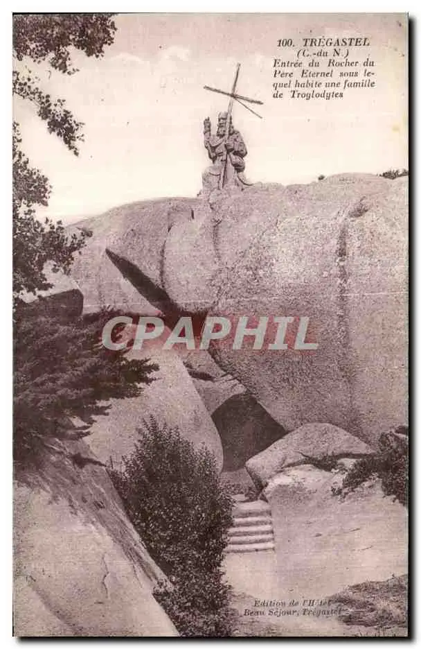 Cartes postales Tregastel Entree du Rochers du Pere Eternel sous lequel habite une famille de Troglodytes