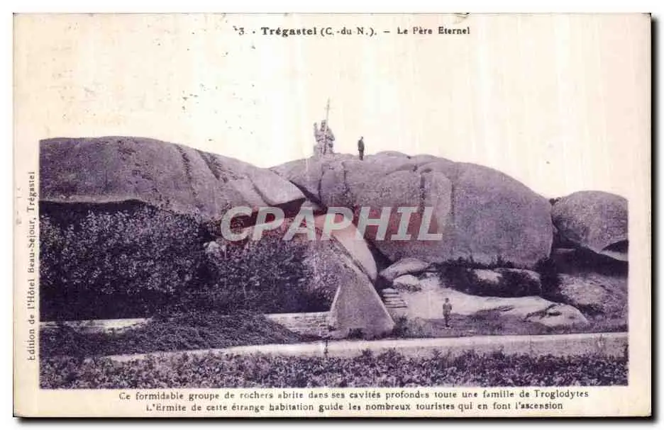 Cartes postales Tregastel Le Pere Eternel Ce Formidable groupe rochers abrite dans ses cavites profonds toute un