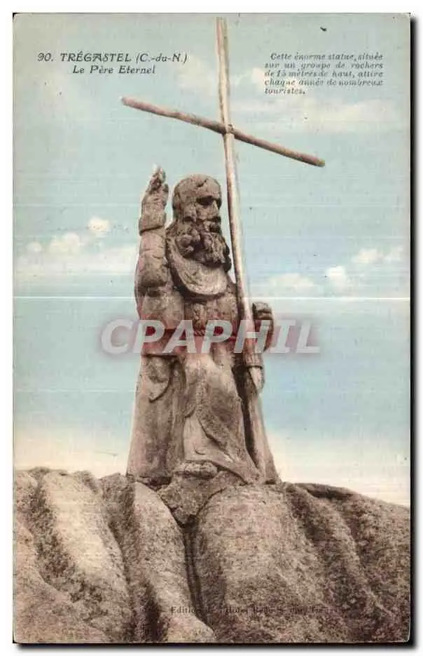 Cartes postales Tregastel Le Pere Eternel Cette enoeme statue situde sur un groups de rochers de 15 meers de hau