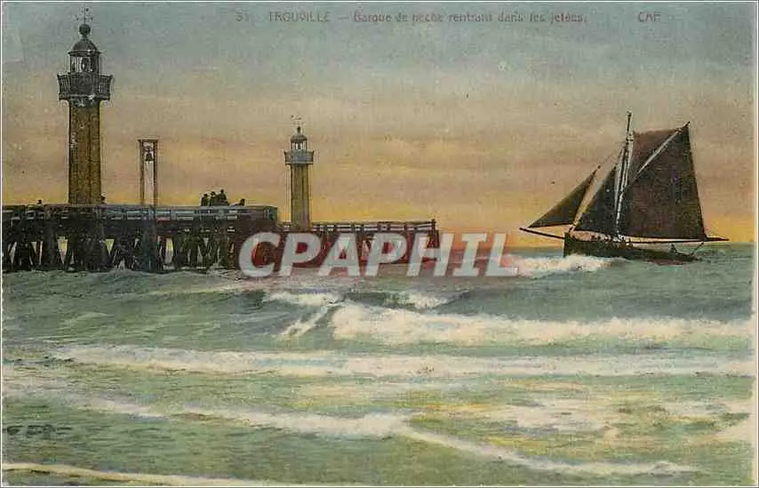 Cartes postales Trouville Barque de Peche Rentrant dans les Jetees Bateau Phare
