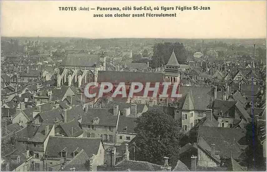 Cartes postales Troyes (Aube) Panorama Cote Sud Est ou Figure L'Eglise St Jean avec son Clocher avant l'Ecroulem
