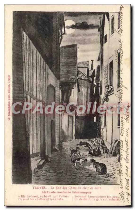 CPA Troyes La Rue des Chats au clair de lune