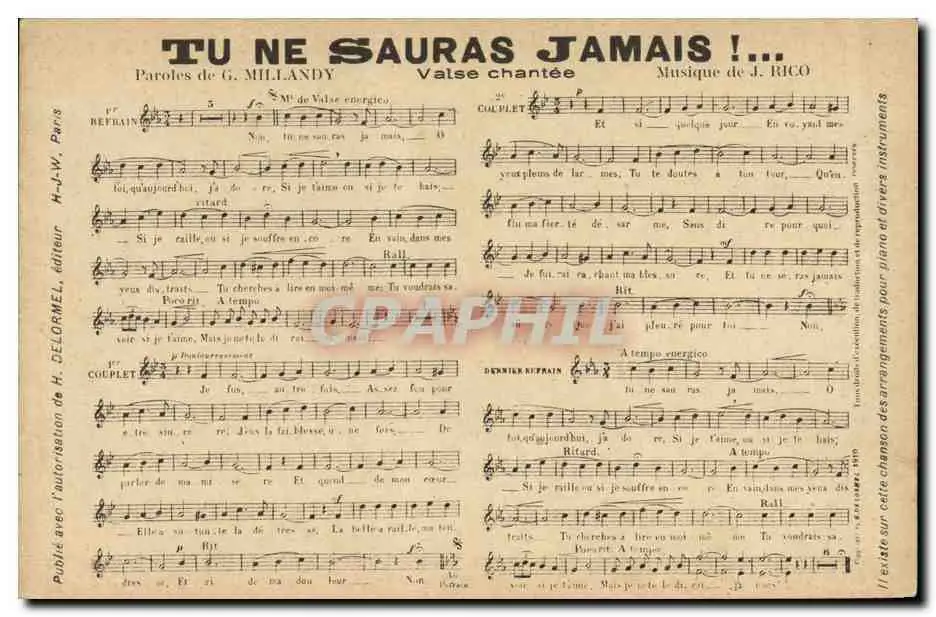 Cartes postales Tu ne sauras jamais ! Millandy Rico Valse Chantee