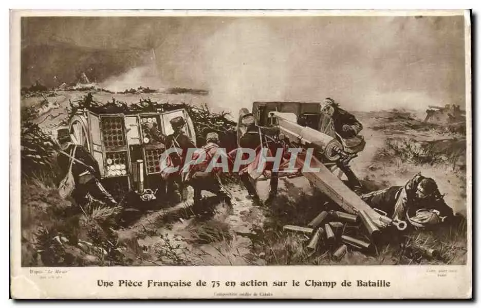 Cartes postales Une Piece Francaise de 75 en action sur le Champ de Bataille Carrey Militaria