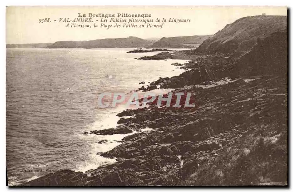 Cartes postales Val Andre Les falaises pittoresques de la Lingouare Plage des Vallees en Pleneuf