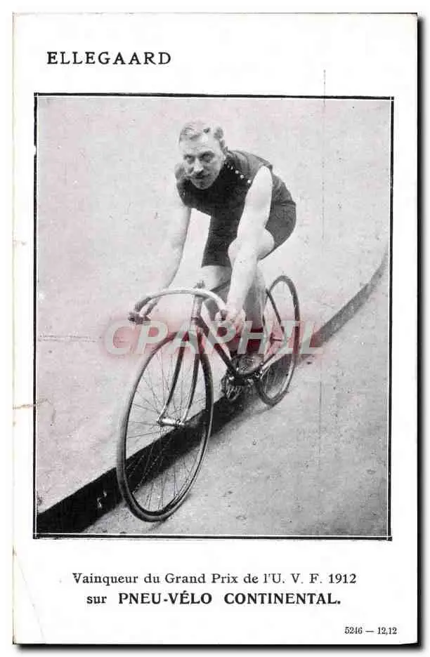 Cartes postales Velo Cycle Cyclisme Ellegaard Vainqueur du prix de l'UVF 1912 Pneu Velo Continental