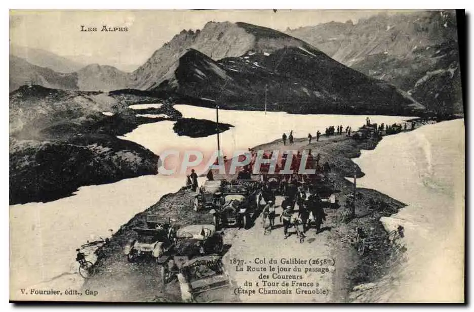 Cartes postales Velo Cycle Cyclisme Les alpes Col du Galibier La route le jour du passage coureurs Tour de Franc