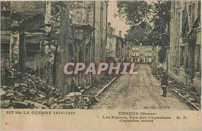 Cartes postales Verdun Meuse Les Ruines Rue des Capucines Militaria