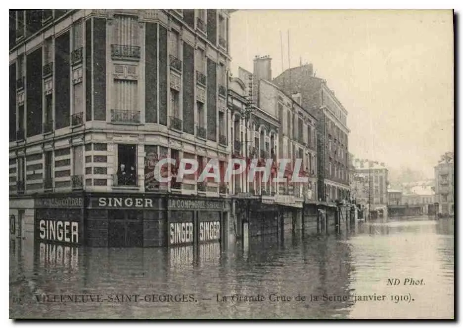 Cartes postales Villeneuve Saint Georges La grande Crue de la Seine Janvier 1910 Singer