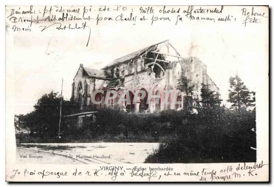 Cartes postales Virginy Eglise Bombardee Militaria