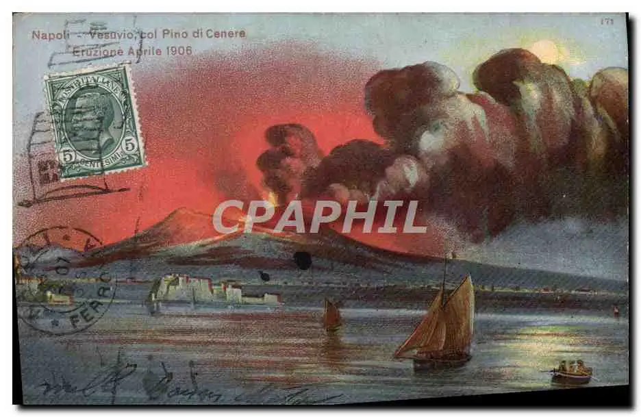 Cartes postales Volcan Napoli Vesuvio col Pino di Canere Eruzione Aprile 1906