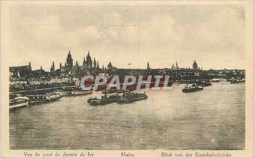 Cartes postales Vue de Pont de chemin de Fer Mainz Bateaux