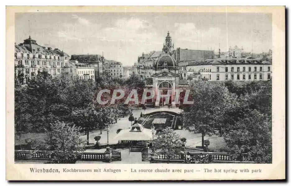 Cartes postales Wiesbaden Kochbrunnen mit Anlagen La source Chaude Avec Parc The hot Spring with Park