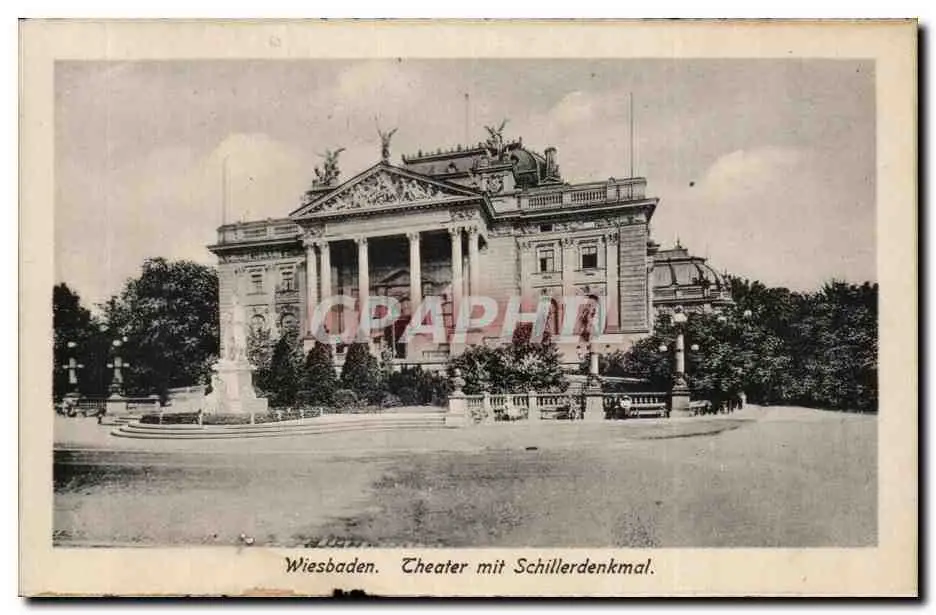 Cartes postales Wiesbaden Theater mit Schillerdenkmal