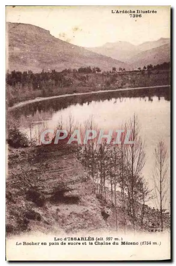 Cartes postales l'Ardeche Iluustree Lac d'Issarles Le Rocher en pain de sucre et la Chaine du Mezeno