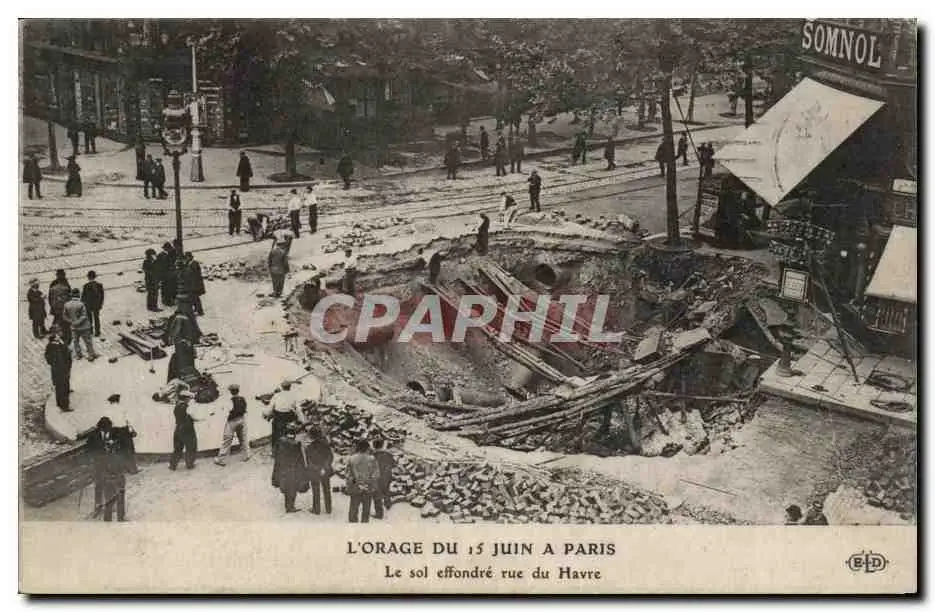 Cartes postales l'orage de 15 juin a Paris PLe sol effondre rue du Havre