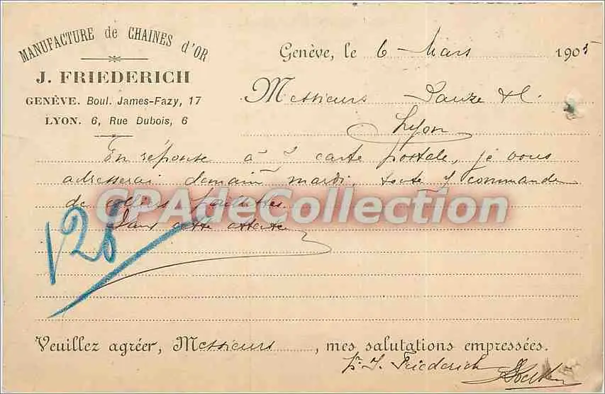 Cartes postales manufacture de chaines d'or Friederich Gen�ve Lyon