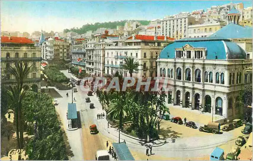 Cartes postales moderne Alger La Place de l'Opera et la Rue Dumont d'Urville