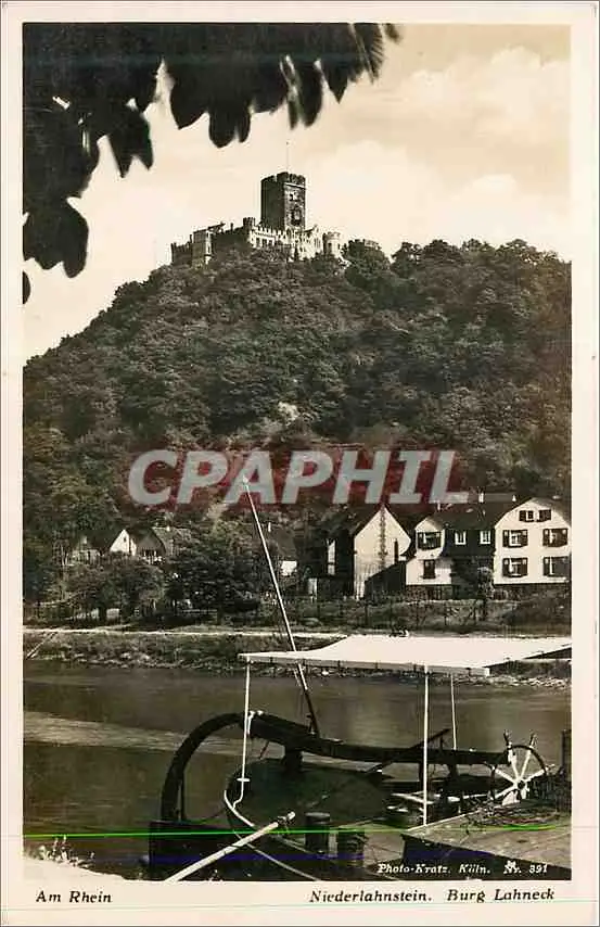 Cartes postales moderne Am Rhein Niederlahnstein Burg Lahneck Bateau