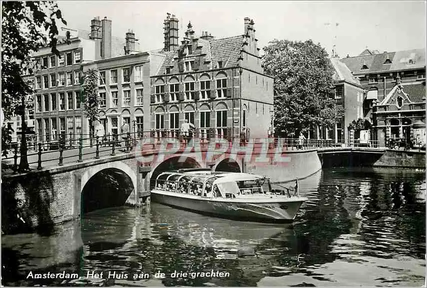 Cartes postales moderne Amsterdam Grimburgwal Maison sur les trois canaux Bateau