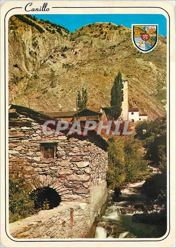 Cartes postales moderne Andorra Valls d'Andorra Canillo Echappee sur le vieux moulin avec au fond l'eglise