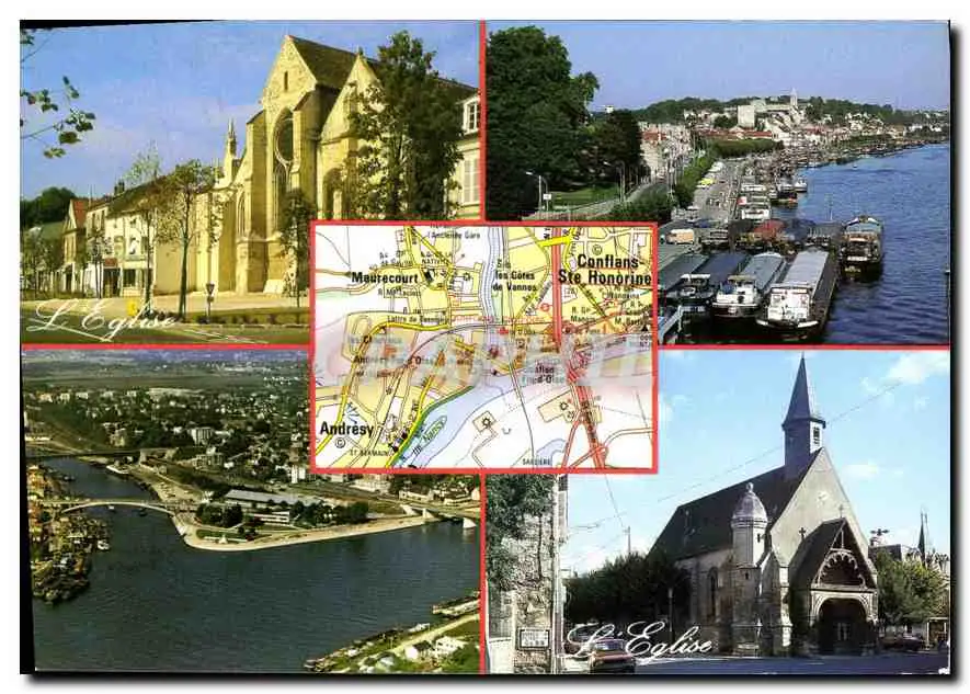 Cartes postales moderne Andresy L'Eglise Conflans Vue generale et Fin d'Oise Maurecourt L'Eglise Notre Dame