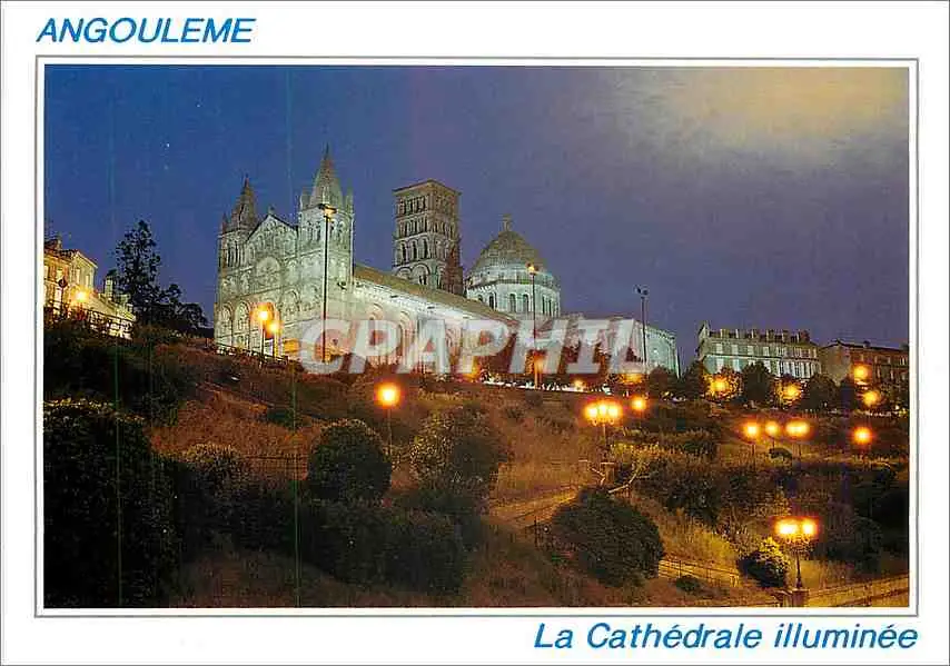 Cartes postales moderne Angouleme Charente La Cathedrale illuminee et les remparts