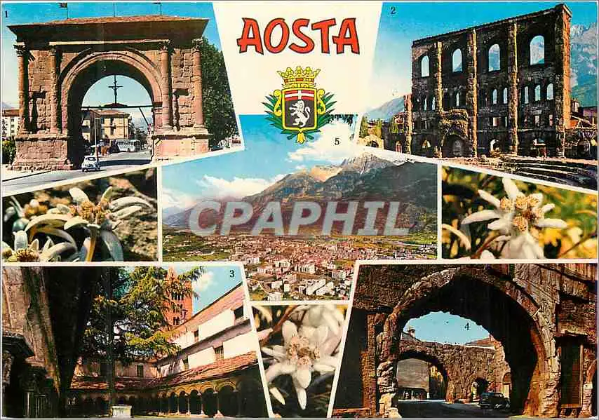 Cartes postales moderne Aosta Arco di Augusto Teatro Romano nello slondo M Emilius Chiostro Collegiata di S Oro