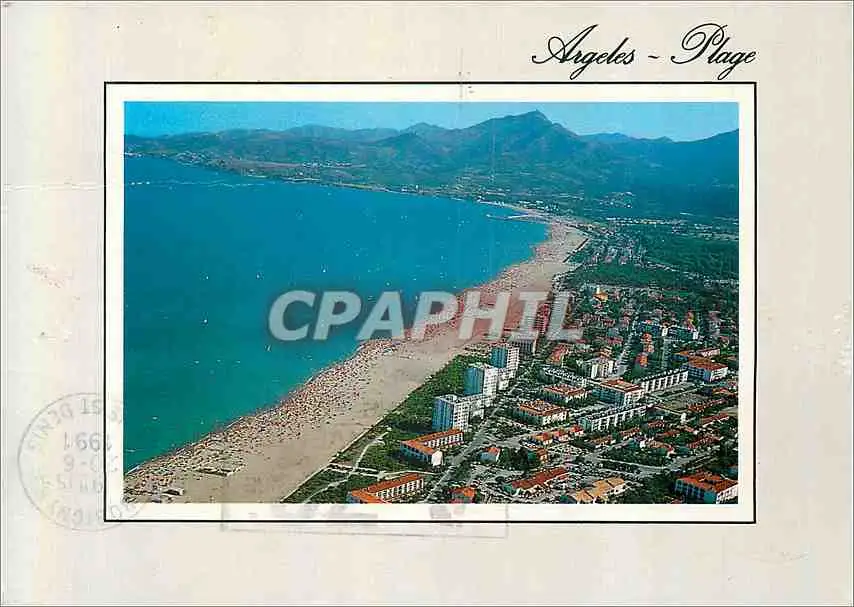 Cartes postales moderne Argeles Plage Vue Aerienne au Fond les Alberes