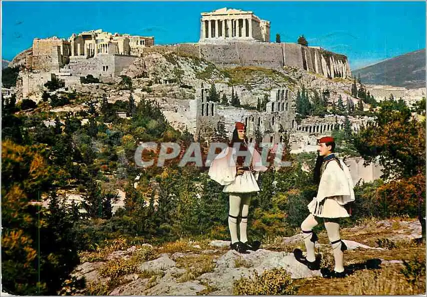 Cartes postales moderne Athenes Vue de l'Acropole Evzone Royale Guard Militaria