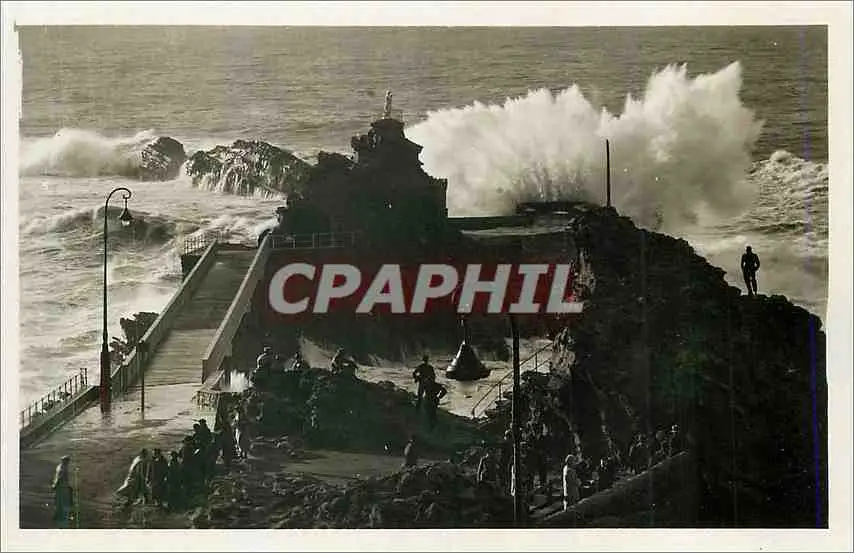 Cartes postales moderne Biarritz Le Rocher de la Vierge par grosse mer
