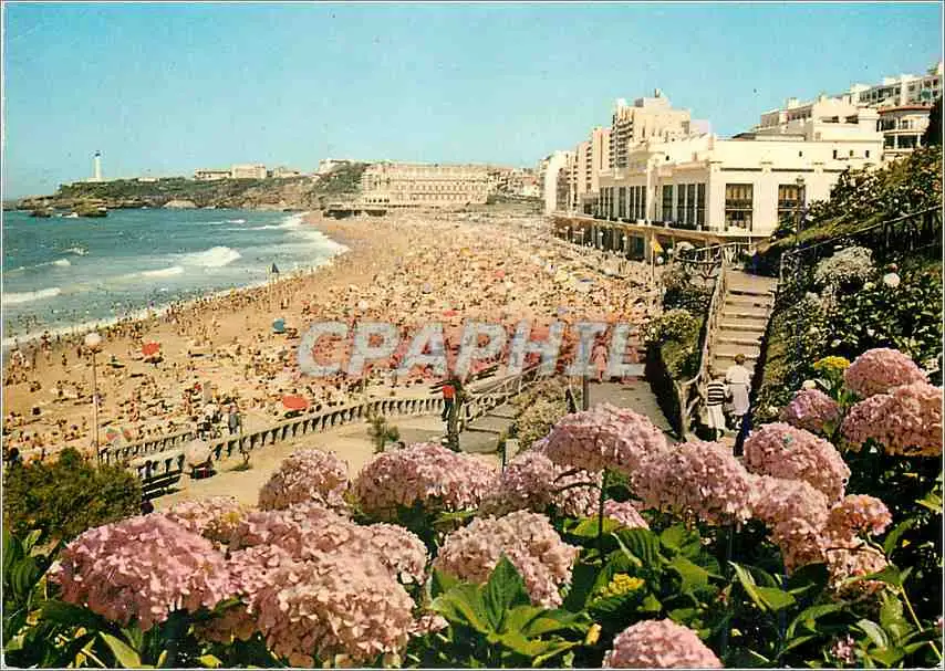 Cartes postales moderne Biarritz Vue sur la Grande Plage le Casino Le Victoria Surf l'Hotel du Palais et le Phare
