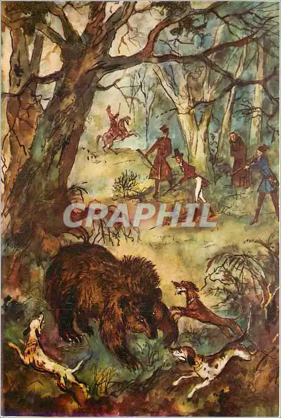 Cartes postales moderne Biuro Wydawnicze Ruch Warszawa 1971 Ilustrowal Jan Marcin Stancer Ours Chasse Chiens