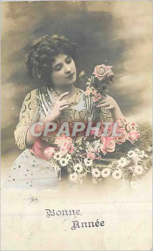 Cartes postales moderne Bonne Annee Femme Roses Fleurs