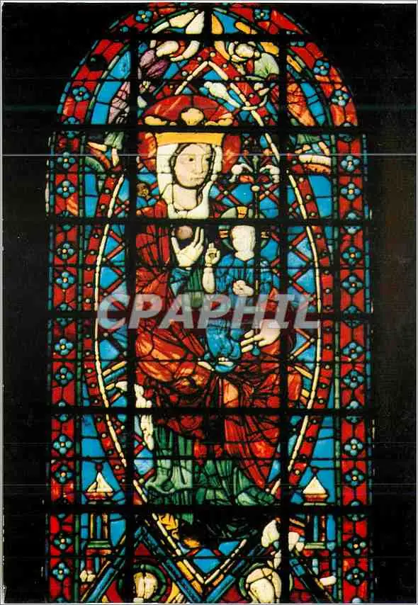 Cartes postales moderne Bourges (Cher) Les Merveilles du Berry La Cathedrale St Etienne Vierge en Majeste (Vitrail du XI