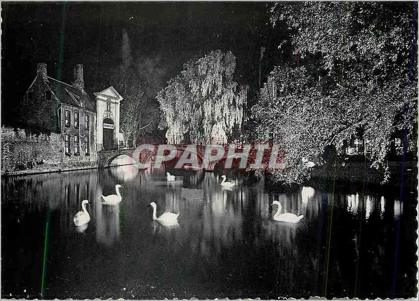 Cartes postales moderne Bruges Illumination du Pont du Beguinage Cygnes
