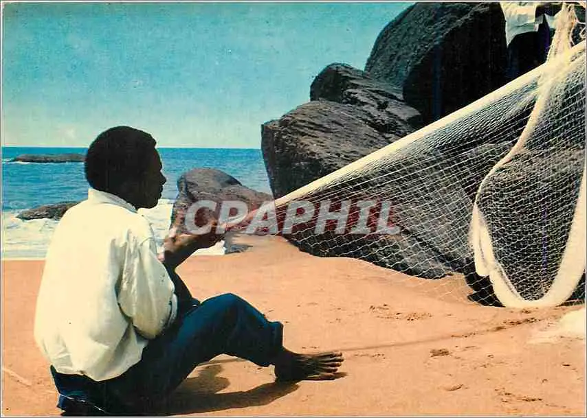 Cartes postales moderne Cameroun Littoral Kribi Fabrication d'un filet de peche