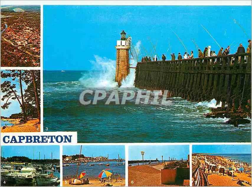 Cartes postales moderne Capbreton Landes Vue generale Plage du Bourret Pecheurs sur l'Estacade Le Port Phare