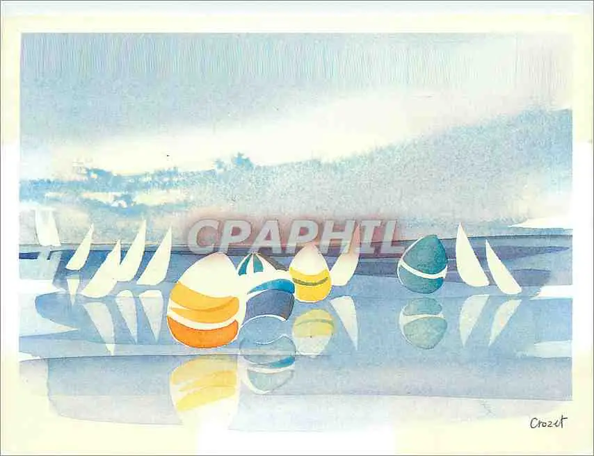 Cartes postales moderne Cartina Regates dans la Baie Aquarelle de Pascale Crozel