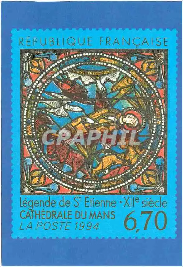 Cartes postales moderne Cathedrale du Mans Legende de St Etienne XIIe siecle Republique Francaise